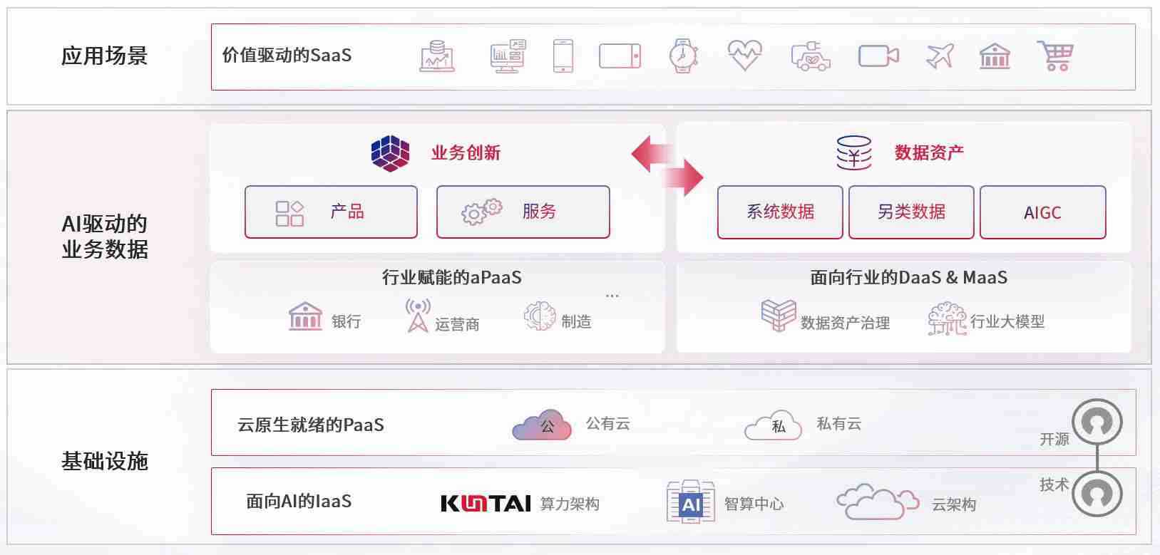 数字时代,,,,围绕企业数字化转型的关键要素,,,EBPAY钱包数码开创性的提出数云融合战略和技术体系框架,,着力在云原生、、、、数字原生、、、AI原生和信创产业上架构产品和服务能力,,,,为处在不同数字化转型阶段的快消零售、、、汽车、、金融、、、医疗、、、政企、、教育、、运营商等行业客户提供泛在的敏捷IT能力和融合的数据驱动能力,,,构建跨界融合创新的数字业务场景和新业务模式,,助力企业级客户建立面向未来的核心能力和竞争优势,,,全面推动社会的数字化、、智能化转型升级。。