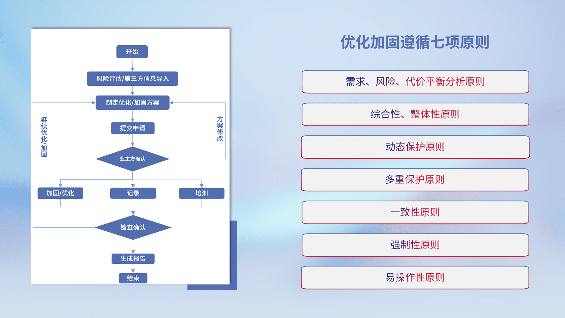 最大程度利用现有资产,,,,对评估发现的问题进行封堵与整改,,,防止漏洞被利用,,,,提升整体网络安全性,,,,为客户带来高标准的优化加固服务。。。
